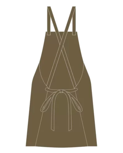 - Đây là mẫu tạp dề đồng phục được thiết kế theo kiểu yếm dài, có nút để điều chỉnh độ rộng của dây đeo cổ. Phần túi to trước bụng sẽ là nơi mà người mặc có thể đựng dụng cụ khi làm việc. Điểm nổi bật nhất của tạp dề đó chính là hình ảnh logo của thương hiệu nằm ngay phía trước ngực.