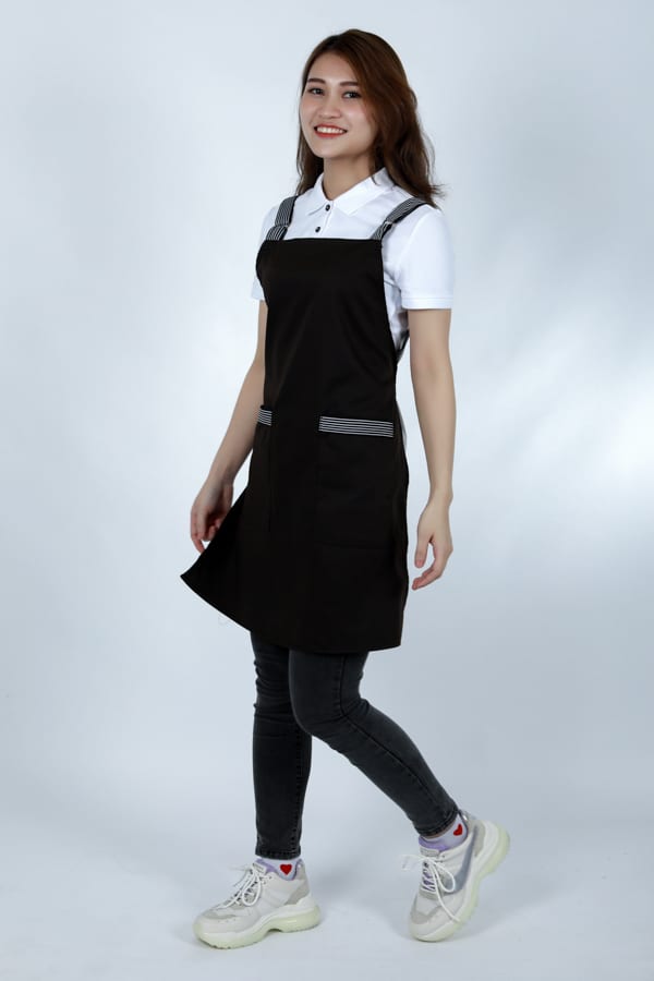 Tạp dề yếm kaki may sẵn đen kẻ sọc