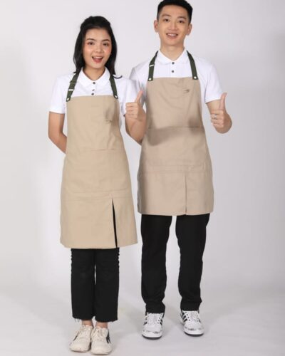 – Tạp dề loại yếm cả người, thắt eo ở giữa và có đai quàng cổ nhằm giữ cho chiếc tạp dề luôn cố định trên người. Tạp dề được mặc bên ngoài có chức năng bảo vệ da và quần áo khỏi dầu mỡ, vết bẩn. Thiết kế thời trang, màu sắc đa dạng.