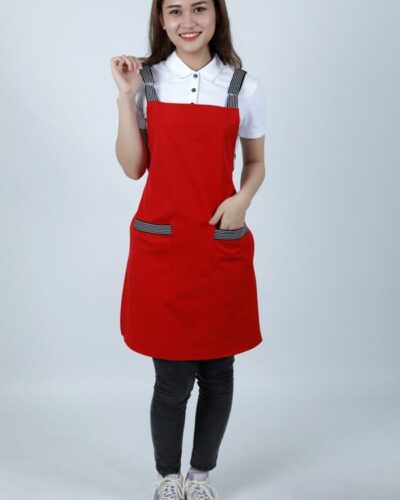 – Tạp dề loại yếm cả người, thắt eo ở giữa và có đai quàng cổ nhằm giữ cho chiếc tạp dề luôn cố định trên người. Tạp dề được mặc bên ngoài có chức năng bảo vệ da và quần áo khỏi dầu mỡ, vết bẩn. Thiết kế thời trang, màu sắc đa dạng.